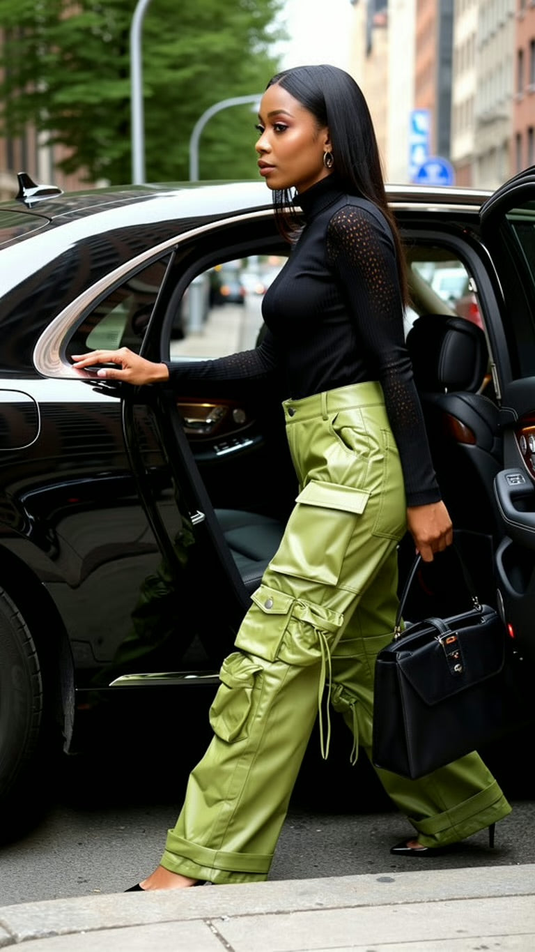 Vegan leather cargo pants. Multi pocket. Tall girl friendly